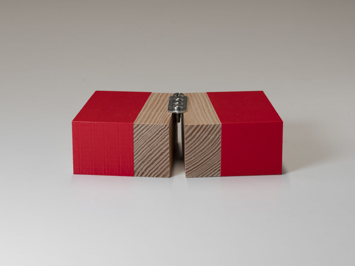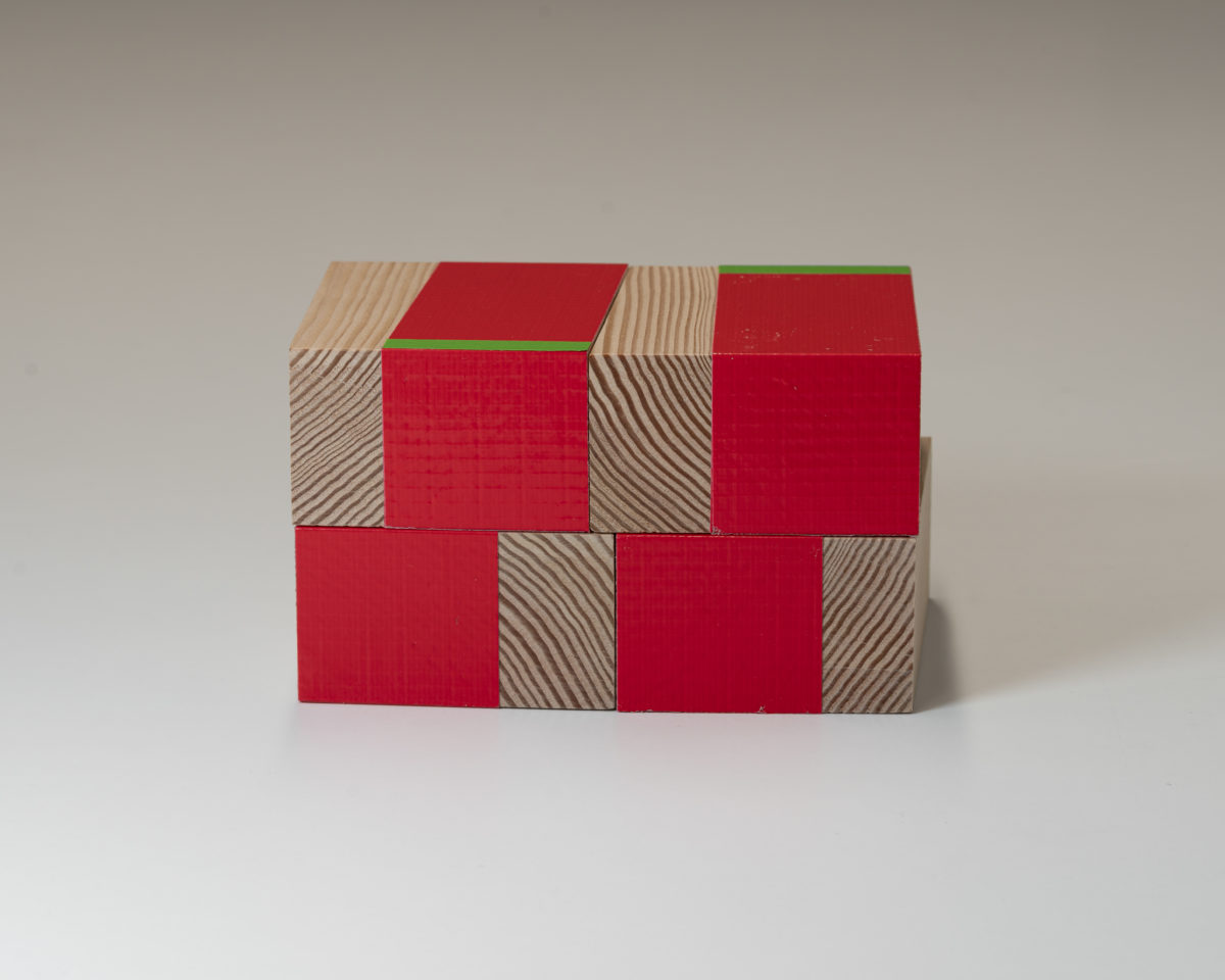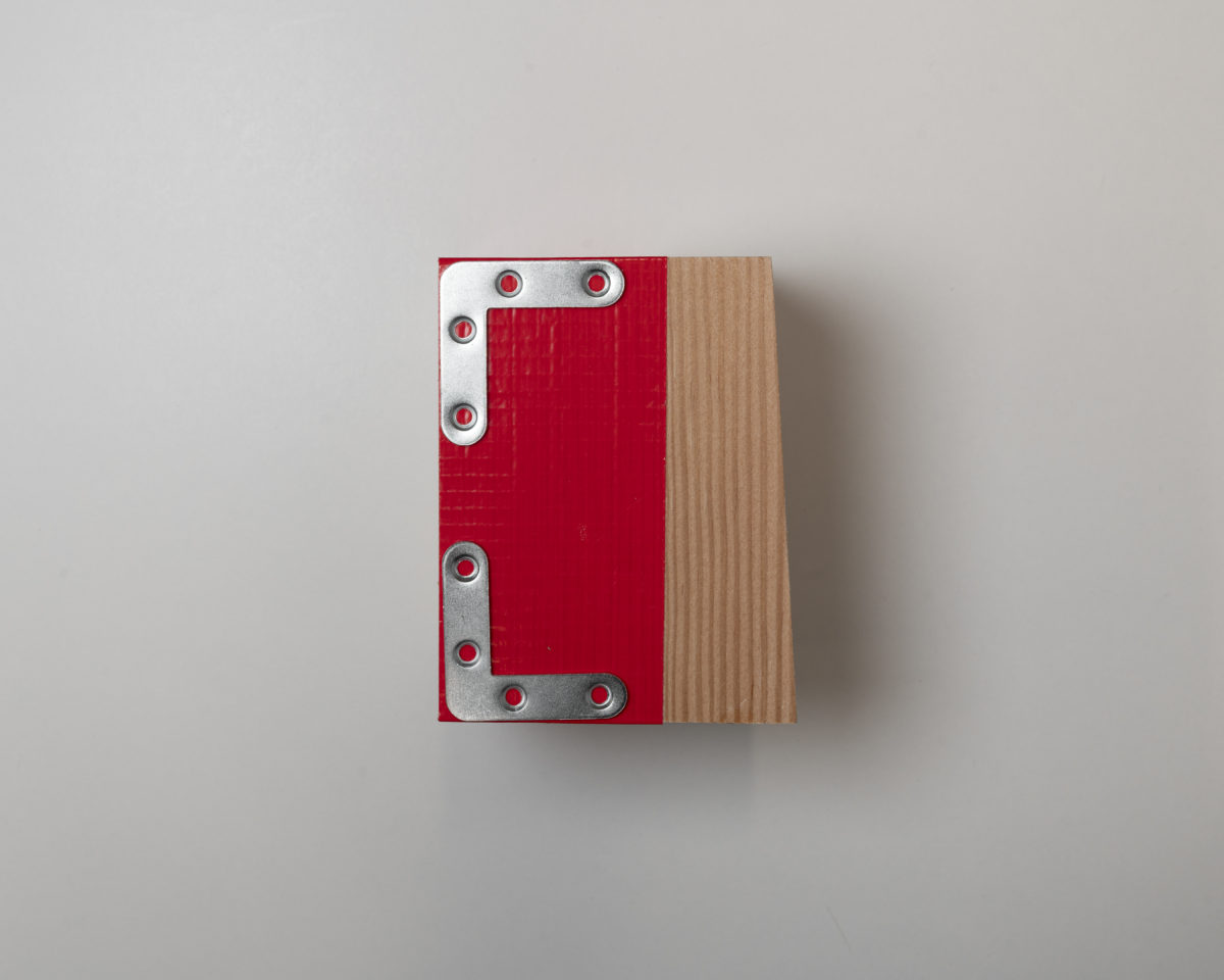 Interval_s consists of 14 identically sized blocks of soft wood, red gaffer tape and various metal fixings. The works are displayed individually or grouped according to conditions of viewing. Overlaying a 1:1 scale floor plan of one building into another the works are placed at points where the spaces intersect. In Lundskonsthall a plan of Eileen Grays house E1027 is drawn upon to activate this dispersal, opening up unexpected and hidden aspects of the gallery and bringing into play a questioning of the conventions of scale between domestic and institutional spaces.